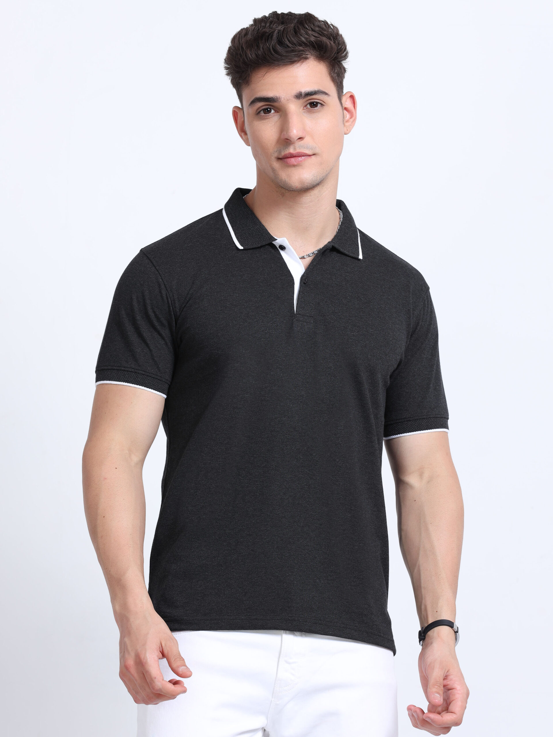 Stylish Jacquard Collar Design – Contrast tipping for sophisticated appearance