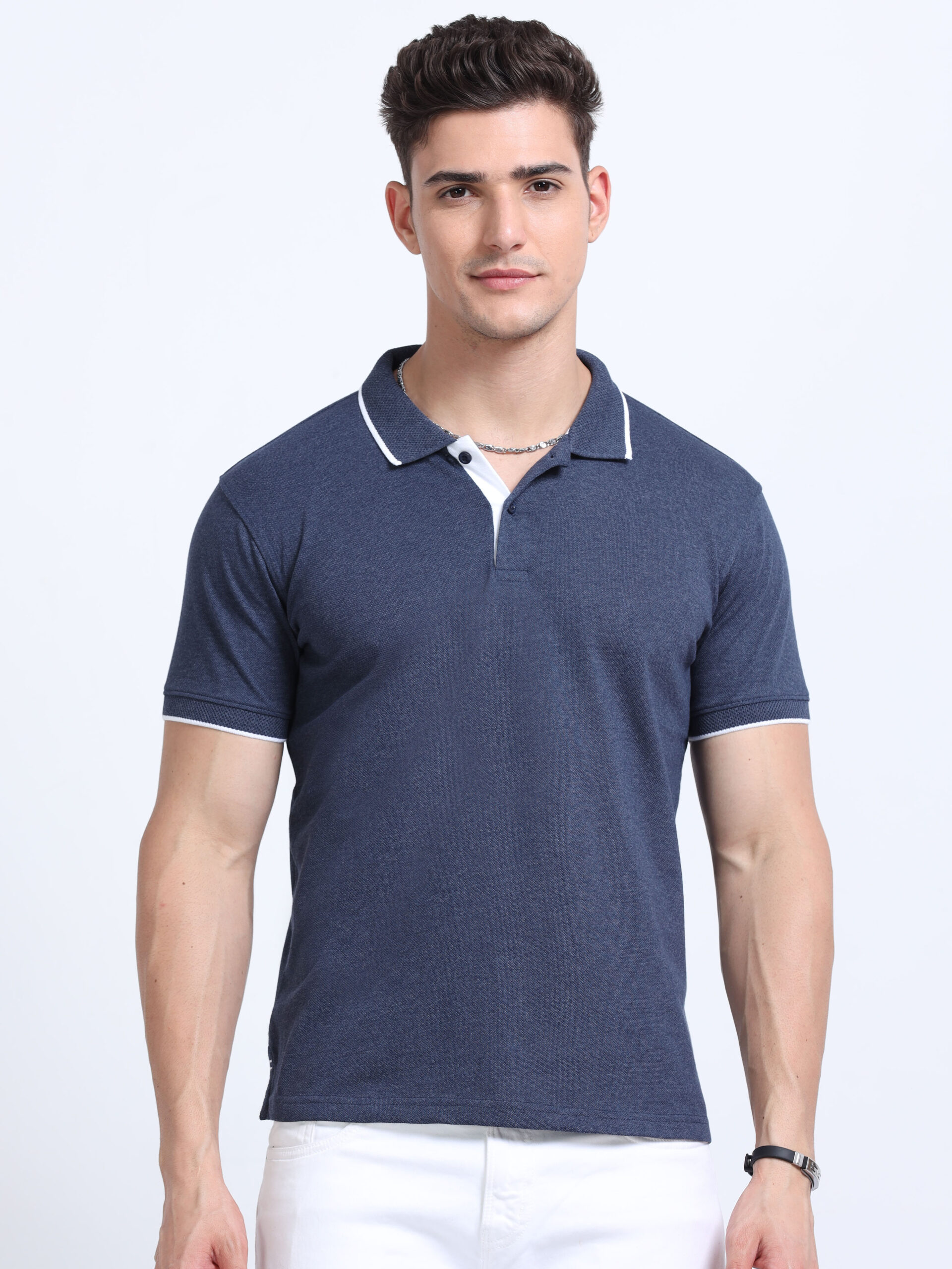 Stylish Jacquard Collar Design – Contrast tipping for sophisticated appearance
