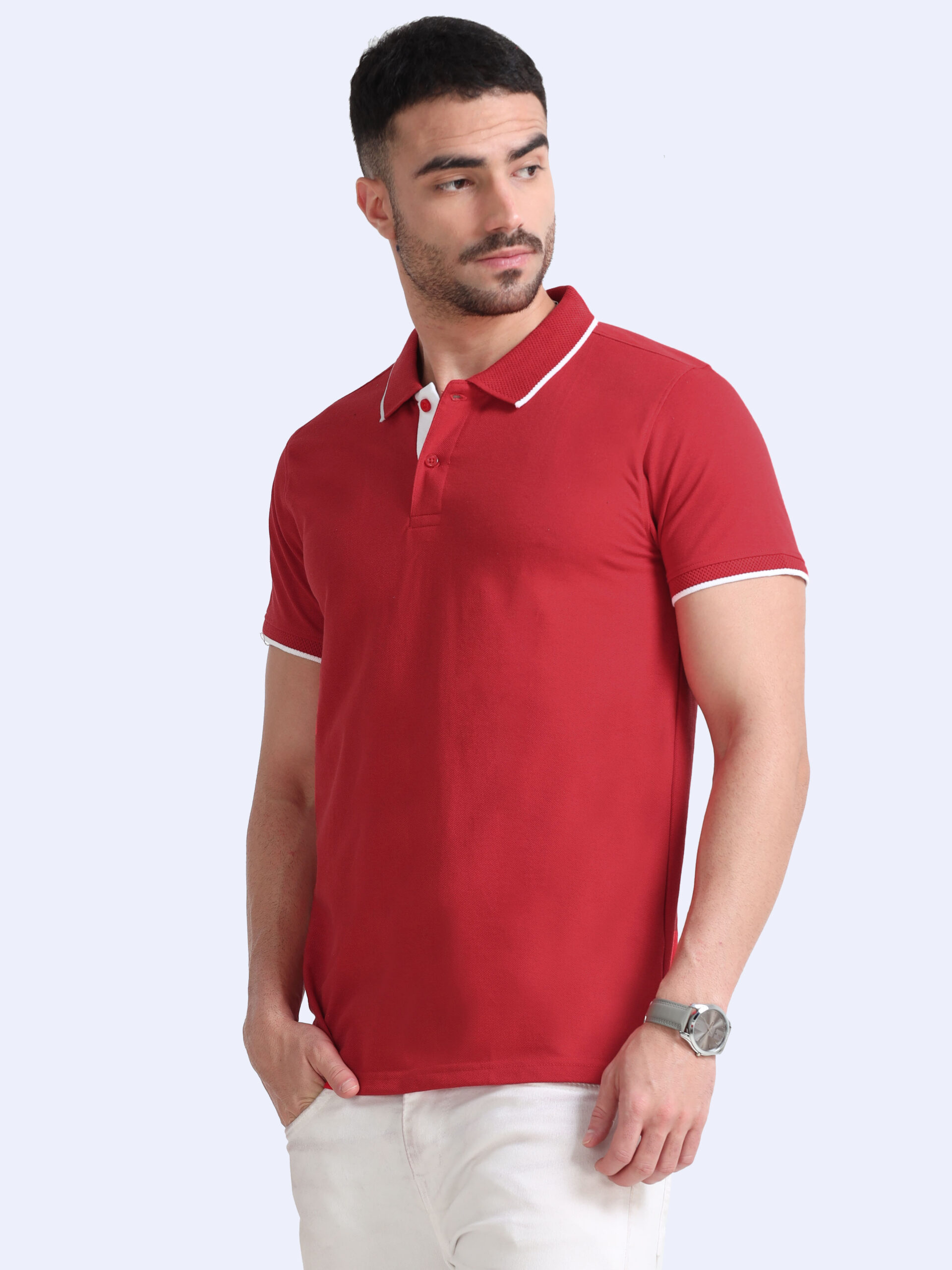 • Cotton blend polo tshirt Red & white tipping