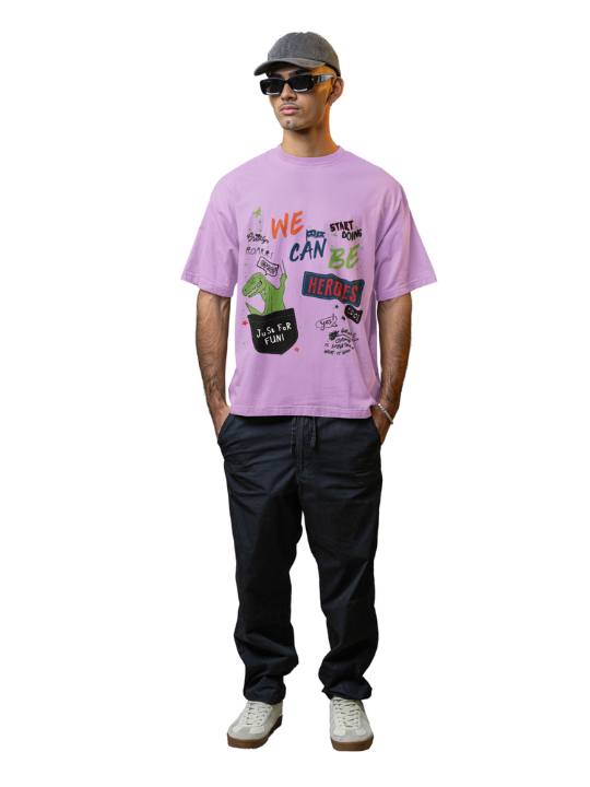 • Oversized Printed Lavender Cotton tshirt